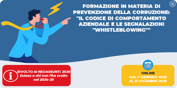 2026 – FORMAZIONE IN MATERIA DI PREVENZIONE DELLA CORRUZIONE: "IL CODICE DI COMPORTAMENTO AZIENDALE E LE SEGNALAZIONI "WHISTLEBLOWING””